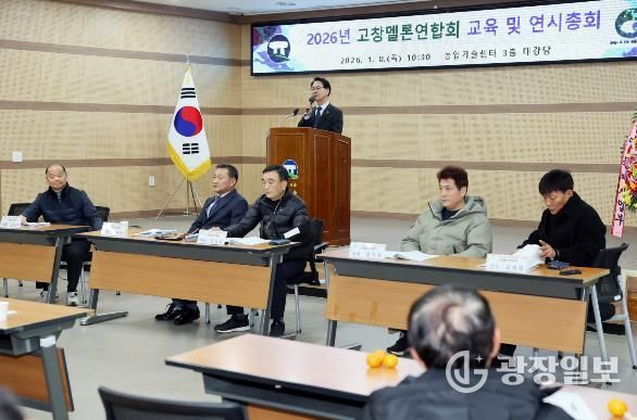 광장일보 주재영 기자 | 고창멜론연합회는 지난 8일 고창군농업기술센터 3층 대강당에서 연합회원 및 관계자 등 80여 명이 참석한 가운데 2026년 연시총회를 성황리에 개최했다고 밝혔다.
