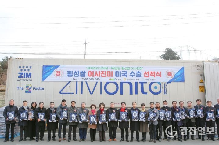 광장일보 이현나 기자 | 횡성군 농산물 공동브랜드 쌀인 ‘어사진미’가 미국 동부 시장 공략을 위해 2026년 첫 수출 선적길에 올랐다.