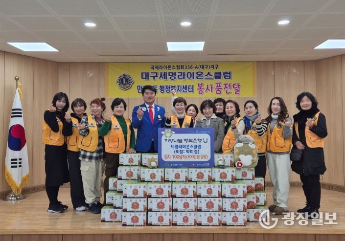 안기영 만촌1동장은 “수년간 변함없이 후원을 이어오고 있는 세명라이온스클럽에 깊이 감사드린다”며 “전해주신 물품은 도움이 꼭 필요한 이웃들에게 소중히 전달하겠다”고 전했다.