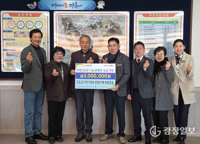 광장일보 주재영 기자 | 장흥군 장흥읍지역사회보장협의체(공동위원장 김주호, 강경일)는 12일, 2026 병오년 새해를 맞아 희망나눔 이웃돕기 성금 3백만원을 기탁했다.