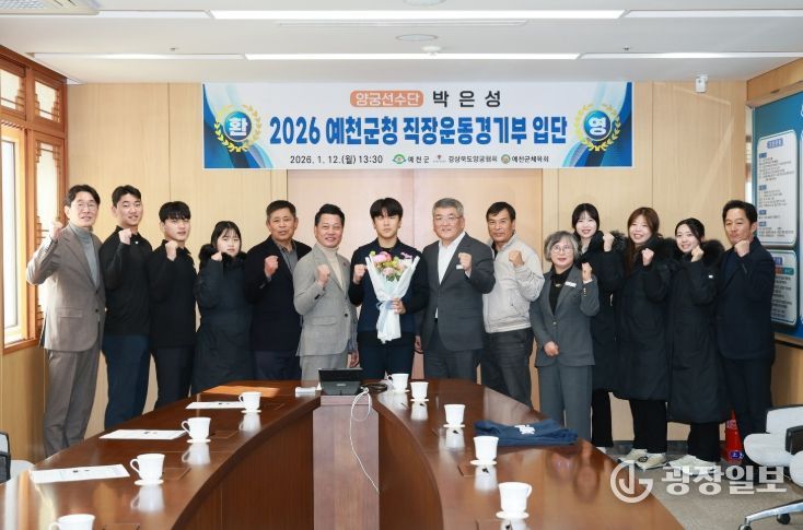 광장일보 주재영 기자 | 예천군은 2026년 예천군청 양궁선수단의 새로운 식구로 박은성 선수가 합류하며, 12일 예천군청 군수실에서 입단식을 개최했다고 밝혔다.