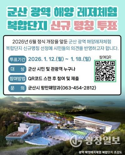 광장일보 주재영 기자 | 군산시가 군산 광역 해양레저체험 복합단지의 새로운 명칭과 관련한 시민 참여 선호도 조사를 18일까지 실시한다.