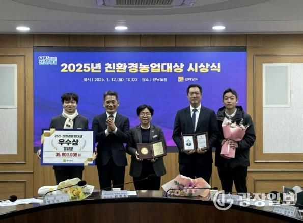 광장일보 주재영 기자 | 영암군이 12일 전라남도의 ‘2025년 친환경농업대상 시상식’에서 우수상과 함께 상사업비 3,500만원, 포상금 150만원을 받았다.