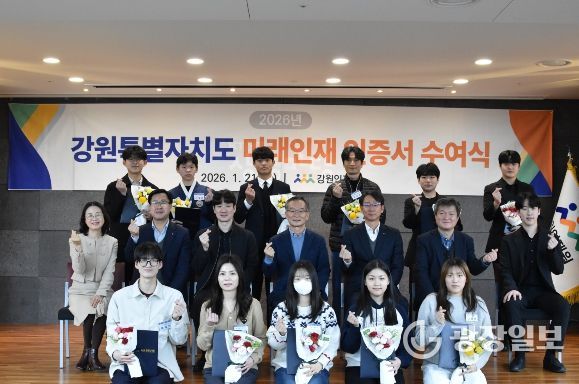 광장일보 이현나 기자 | 강원인재원은 1월 21일 KT·G 상상마당 춘천스테이 나비홀에서 ‘2026년 강원특별자치도 미래인재 인증서 수여식’을 개최했다고 밝혔다.