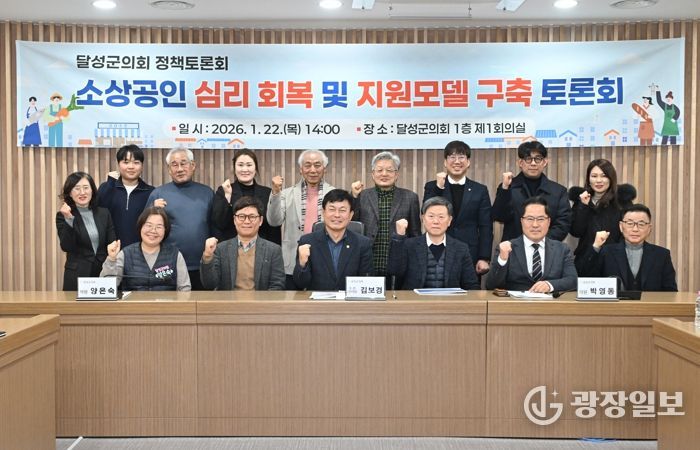 광장일보 주재영 기자 | 달성군의회 김보경 부의장은 22일 오후 2시, 의회 1층 제1회의실에서 ‘달성군 소상공인 심리 회복 및 지원모델 구축’을 주제로 정책토론회를 개최했다. 이번 토론회는 달성군 내 지역 소상공인의 우울·불안·강박·공황·대인 갈등 등 심리적 어려움을 극복하기 위한 소상공인 특화 심리상담 서비스 도입 방안을 논의하기 위해 마련됐다.