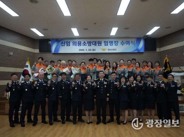 광장일보 주재영 기자 | 경산소방서(서장 한창완)는 1월 23일 오후 5시 30분, 경산소방서 대청마루에서 신임 의용소방대원 임명장 수여식을 개최했다.