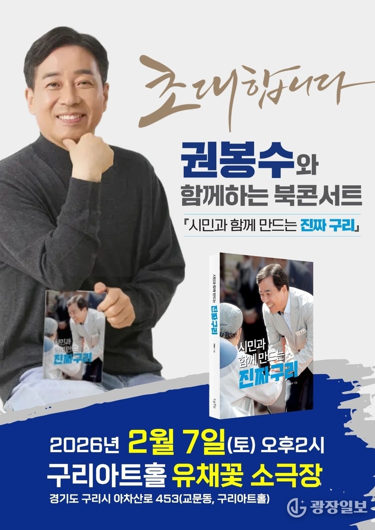 이번 북콘서트는 권봉수 시의원의 삶과 도시의 미래 비전을 담은 책을 중심으로 시민들과 소통하는 자리로, 오는 6월 지방선거를 앞두고 구리시장 출마를 위한 본격적인 행보의 시작이 될 전망이다.
