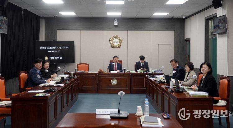광장일보 주재영 기자 | 태백시의회는 29일 위원회실에서 제290회 임시회 제8차 본회의를 열고 시설사업소, 회계과, 민원과, 기획감사과, 동행정복지센터, 총무과, 예산정책과 등 7개 부서에 대한 2026년 주요업무 계획에 대한 보고를 받았습니다.