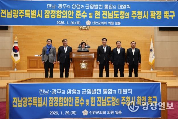 아울러 신안군의회는 이번 결의문을 통해 전남광주특별시 주청사를 현 전라남도청 소재지로 확정하고, 전남도청과 광주시청 존치를 전제로 한 권한·기능 분담과 합의사항 번복을 방지하기 위한 제도적 장치 마련을 촉구했다.