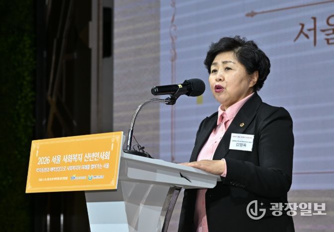 광장일보 주리아 기자 | 서울특별시의회 보건복지위원회 김영옥 위원장(국민의힘, 광진3)은 1월 29일 오전 10시 30분, 마포구 케이터틀 컨벤션홀에서 열린 '2026 서울 사회복지 신년인사회'에 참석해 사회복지 현장 종사자들에게 새해 인사와 함께 격려의 메시지를 전했다.