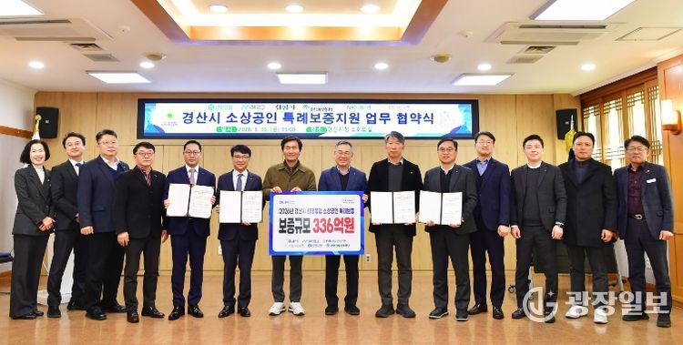 광장일보 주재영 기자 | 경산시는 30일 경북신용보증재단(이사장 김중권), 아이엠뱅크(경산영업부장 조경현), 농협은행(경산시지부장 이재근), 국민은행(경산지점장 장대령), 신한은행(경산공단금융센터장 성제활)과 2026년 경산시 소상공인 특례 보증지원에 관한 업무 협약을 체결했다.