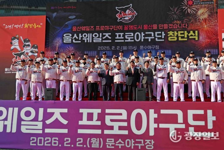 광장일보 주재영 기자 | 울산광역시(시장 김두겸)는 2월 2일(월) 울산 문수야구장에서 '울산 웨일즈' 공식 창단식을 개최했다.