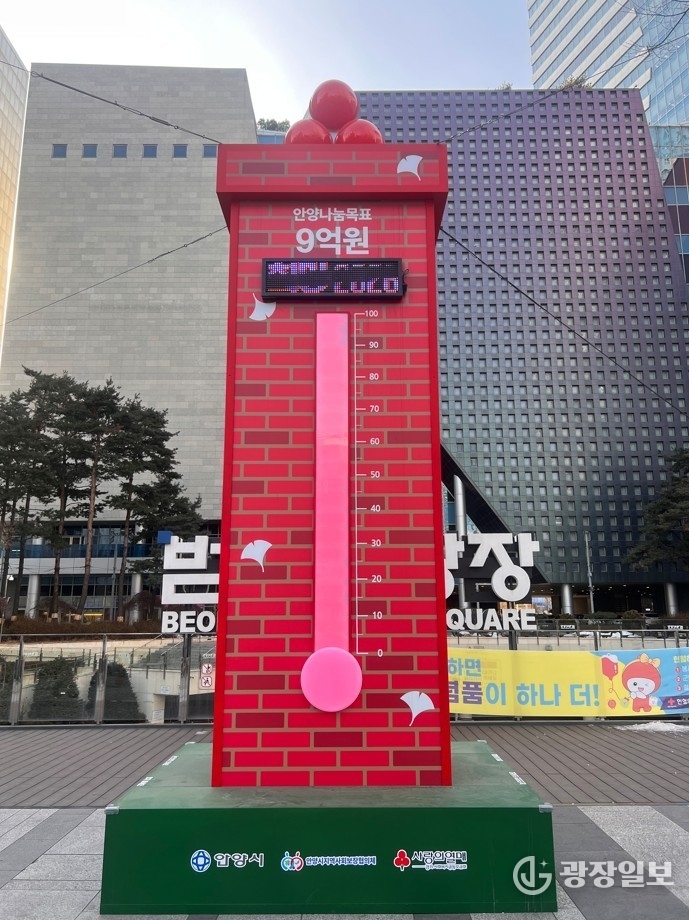 안양시= 주재영 기자 | 안양시는 범계역 광장에 설치된 ‘사랑의 온도탑’이 올해도 목표 온도를 넘어 101도를 기록했다고 4일 밝혔다.