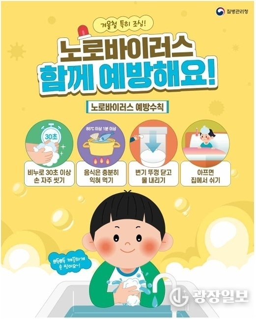 보건소 관계자는 “가족 간 교류가 잦은 명절 기간에는 감염 확산 우려가 큰 만큼 올바른 손 씻기와 안전한 조리가 무엇보다 중요하다”며 “특히 집단생활을 하는 영유아 보육시설에서는 노로바이러스 의심 증상이 나타날 경우 등원을 자제하고, 즉시 가까운 보건소에 신고해 달라”고 말했다.