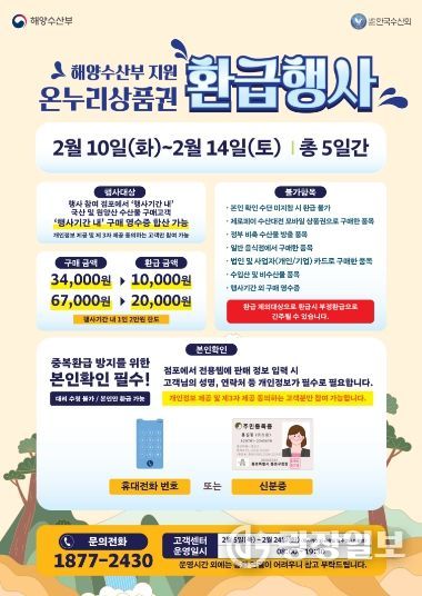 광장일보 주재영 기자 | 해양수산부가 주최하는 ‘수산물 온누리상품권 환급 행사’가 오는 2월 10일부터 14일까지 5일간 영덕전통시장 및 강구시장에서 진행된다.