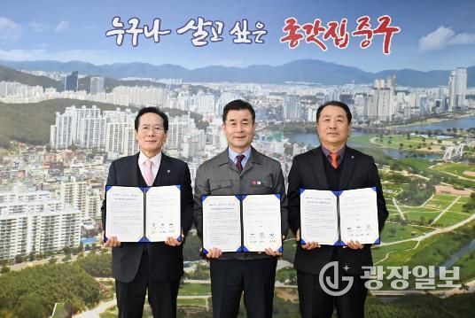 울산 중구와 울산신용보증재단, (재)울산경제일자리진흥원은 2월 6일 오후 2시 중구청 구청장실에서 ‘2026년 소상공인·중소기업 경영안정자금 사무위탁 협약’을 체결했다.