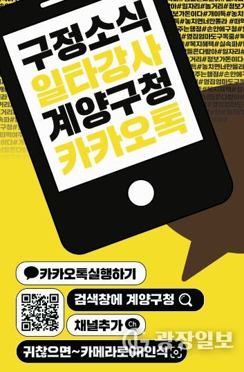 구정소식지 ‘계양산메아리’는 매월 정기 발행을 통해 정책, 복지, 문화, 생활정보를 균형 있게 담아내고, 카카오톡 채널을 통해 주요 시책, 행사 일정, 재난·안전 정보를 신속히 제공해 디지털 소통 기능도 강화한다.