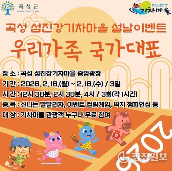 광장일보 주재영 기자 | 곡성군은 설명절 연휴 기간 중 2월 16일부터 18일까지 3일간 섬진강기차마을 중앙광장에서 방문객들을 위한 특별 이벤트를 운영한다고 6일 밝혔다.