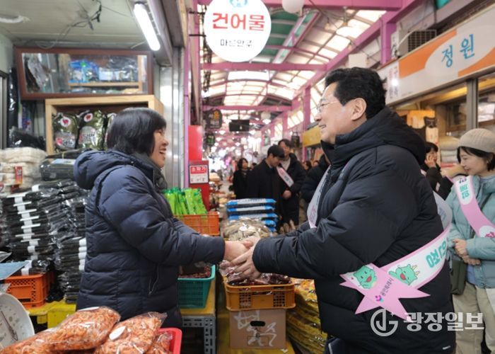 광장일보 주재영 기자 | 이상일 용인특례시장은 10일 설을 앞두고 용인중앙시장에서 장을 보며 상인과 시민에게 명절 인사를 하고, 수지구 성복동에 있는 장애인 복지시설 ‘해오름의 집’을 위문했다.