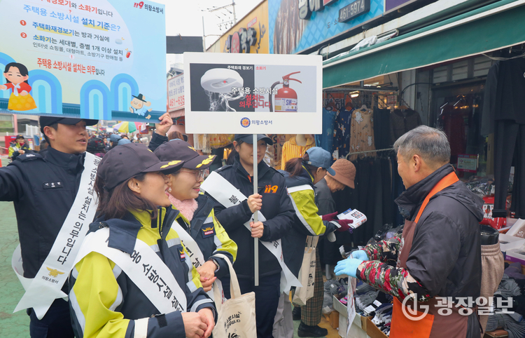 광장일보= 주재영 기자 | 의왕소방서(서장 이정용)는 10일 의왕도깨비시장에서 주택용소방시설 설치 홍보 캠페인을 진행했다.