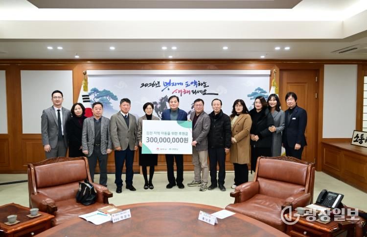 광장일보 주재영 기자 | 김천시는 지난 10일 초록우산어린이재단 경북지역본부, 김천후원회와 함께 지역 아동을 위한 약정 후원금 3억 원 전달식을 개최했다.