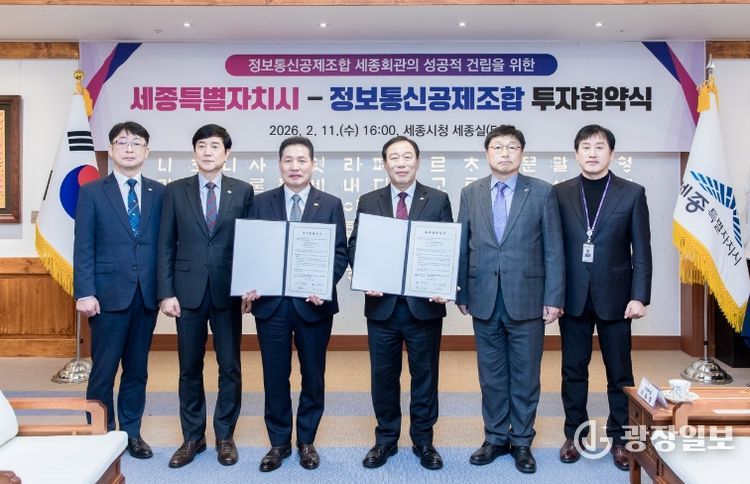 광장일보 나학천 기자 | 세종특별자치시와 정보통신공제조합이 11일 시청 세종실에서 정보통신공제조합 세종회관 건립을 위한 470억 원 규모의 투자협약을 체결했다.