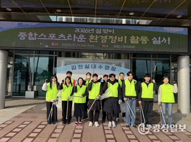 광장일보 주재영 기자 | 김천시시설관리공단(이사장 김재광)은 민족 최대 명절인 설 연휴를 앞두고 시민들이 쾌적한 환경에서 체육시설을 이용할 수 있도록 2월 11일 김천종합스포츠타운 일원에서 ‘설 맞이 환경정비 활동’을 실시했다고 밝혔다.