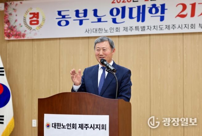 광장일보 주재영 기자 | 김완근 제주시장은 2월 11일 조천주민교류센터 회의실에서 열린 제21기 동부노인대학 졸업식에 참석해 축하 인사를 전했다.