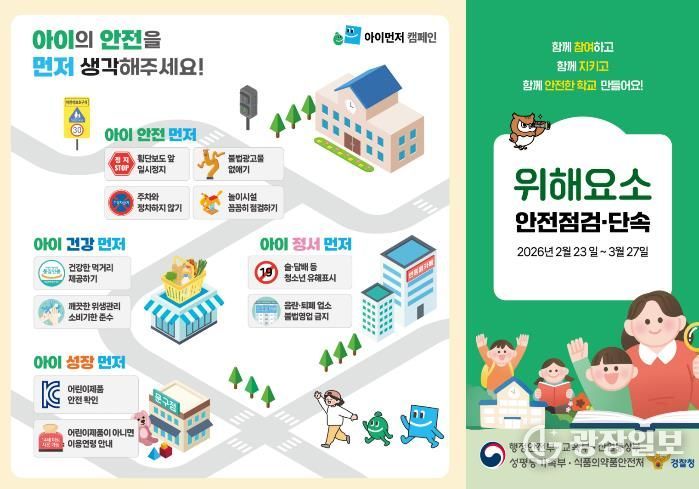 정비 기간은 '26년 2월 23일부터 3월 27일까지 5주간이며, 정비 대상은 어린이보호구역과 교육환경보호구역 내 유치원·초등학교 주변이다. 주요 단속 대상은 ▲보행을 방해하는 유동 광고물 ▲낡고 해로운 광고물 ▲무단 설치된 입간판과 풍선형 입간판(에어라이트) 등이다.