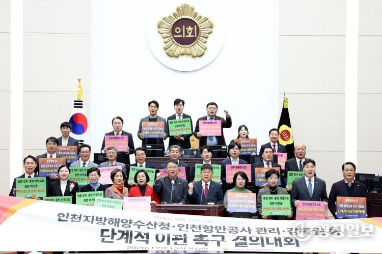 광장일보 주재영 기자 | 인천광역시의회가 정부를 향해 “인천지방해양수산청과 인천항만공사의 관리·감독권 등 주요 기능을 인천광역시로 단계적으로 이관하라”고 촉구했다.