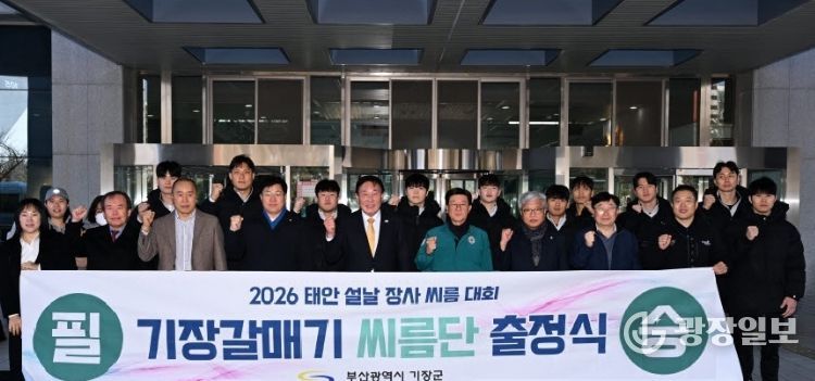 광장일보 주재영 기자 | 기장군은 12일 기장갈매기 씨름단의 역사적인 첫 출정식을 개최하고 ‘2026 태안설날장사씨름대회’에 참가하기 위해 출발하는 선수단을 뜨겁게 격려했다고 밝혔다.