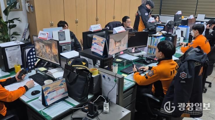 광장일보 주재영 기자 | 울진소방서는 지난 10일 현장대응단 등 직원 30명이 참여한 가운데 PC 기반의 ‘가상재난 시뮬레이션 팀 단위 모의전술훈련’을 실시했다.