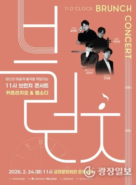 광장일보 주재영 기자 | 부산 금정구 금정문화회관 은빛샘홀에서 펼쳐질 2026년 2월 브런치 콘서트는 ‘카프리치오 & 랩소디’란 특별한 주제로 관객들을 찾아온다.