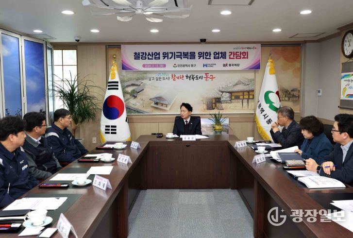 광장일보 주재영 기자 | 인천 동구는 지난 12일 구청 접견실에서 현대제철과 동국제강 등 기업 관계자들과 함께‘철강산업 위기 극복을 위한 간담회’를 개최했다고 밝혔다.