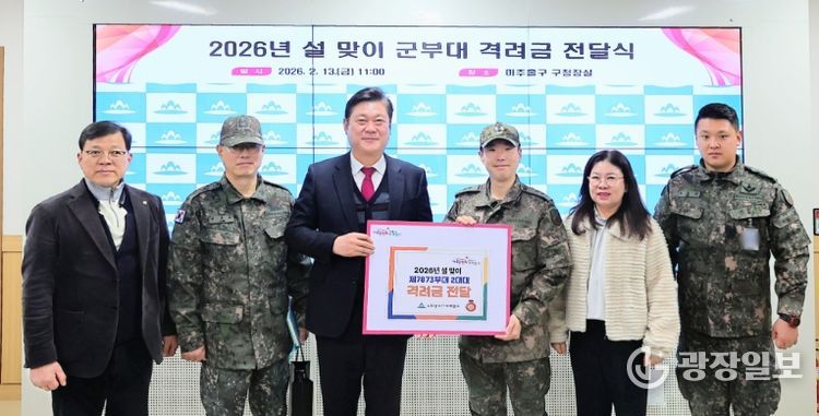광장일보 주재영 기자 | 인천 미추홀구는 13일 설 명절을 맞아 국토방위와 국가안보를 위해 헌신하는 군 장병들의 노고를 격려하기 위해 미추홀구 관교동 승학산에 위치한 육군 제7873부대 2대대에 격려금을 전달했다.