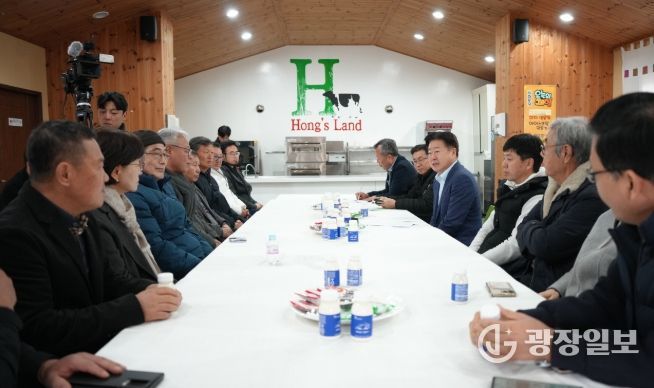 오영훈 제주도지사는 14일 오전 도내 낙농산업 현장인 홍스랜드(지헌목장)을 방문해 낙농가들과 간담회를 가졌다. 오 지사는 부서 간 협업을 통한 실효성 있는 대책 추진과 현장의 목소리가 반영된 세부 실행계획 수립을 주문했다.