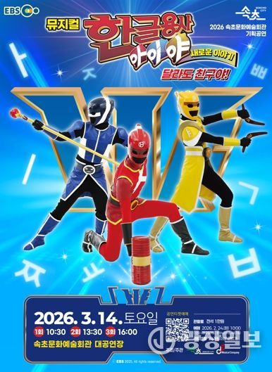 광장일보 이현나 기자 | 속초시는 3월 14일 10시 30분, 13시 30분, 16시 하루 3회 속초문화예술회관에서 뮤지컬‘한글용사 아이야 새로운 이야기-달라도 친구야’를 선보인다.