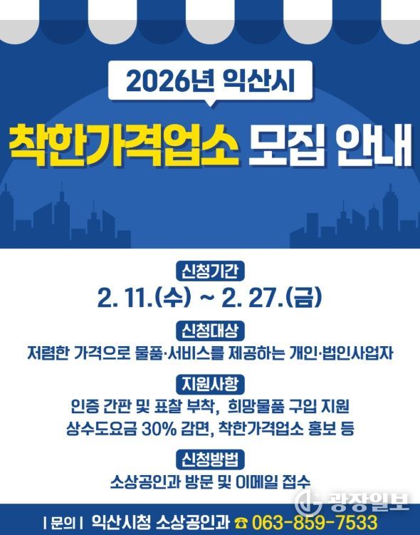 광장일보 주재영 기자 | 익산시가 고물가 시대에도 저렴한 가격과 양질의 서비스로 지역 물가 안정에 기여하고 있는 '착한가격업소'를 발굴하고 지원을 대폭 강화한다.