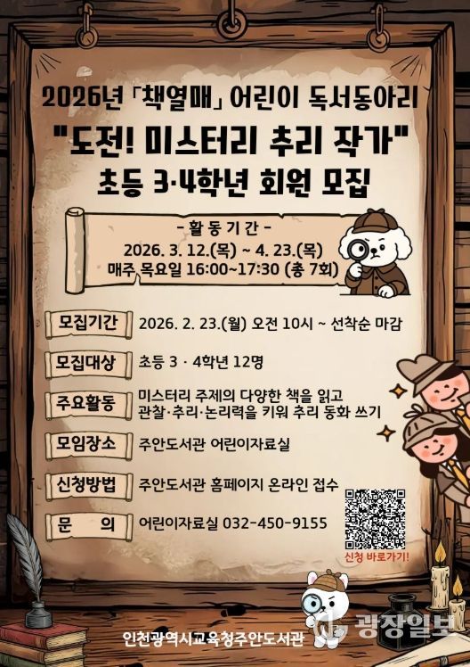 광장일보 주재영 기자 | 인천광역시교육청주안도서관은 오는 23일부터 초등 3~4학년 학생을 대상으로 ‘책열매’ 독서동아리 회원을 모집한다.