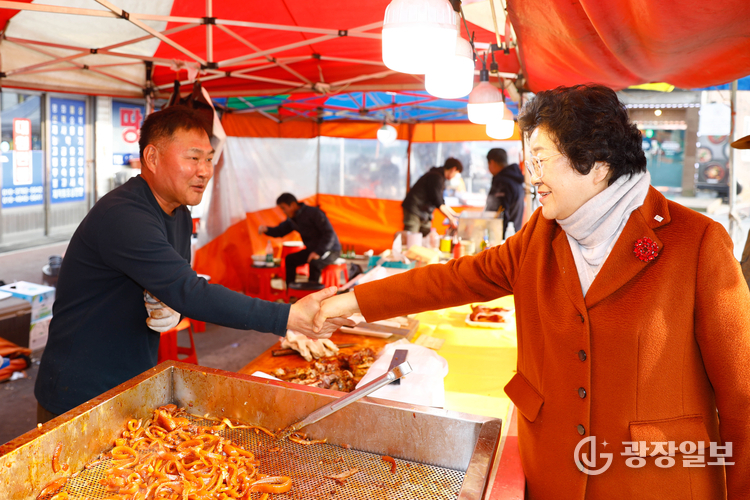 이천시= 주재영 기자 | 김경희 이천시장은 설 명절을 앞둔 지난 14일 관고·장호원 전통시장을 방문해 경기 침체와 소비 위축으로 어려움을 겪는 상인들을 격려하고 명절 물가 동향을 점검했다.