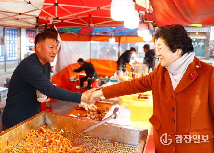 광장일보 주재영 기자 | 김경희 이천시장은 설 명절을 맞아 지난 14일 관고‧장호원 전통시장을 방문해 경기침체와 소비 위축 등으로 어려움을 겪고 있는 상인들을 격려하고, 직접 장보기에 나서 명절 물가 동향을 살피며 현장의 생생한 목소리를 청취했다.
