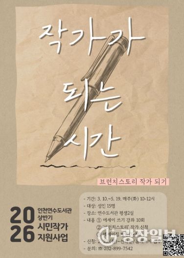 광장일보 주재영 기자 | 인천광역시교육청연수도서관은 인천시민을 대상으로 예비작가 지원 프로그램 ‘작가가 되는 시간’ 참여자를 모집한다.