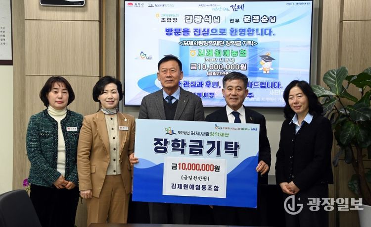 광장일보 주재영 기자 | 김제사랑장학재단은 지난 20일 김제원예농업협동조합(조합장 김광식, 이하 김제원예농협)이 지역의 미래를 짊어질 우수 인재 양성을 위해 장학금 1천만 원을 기탁했다고 밝혔다.