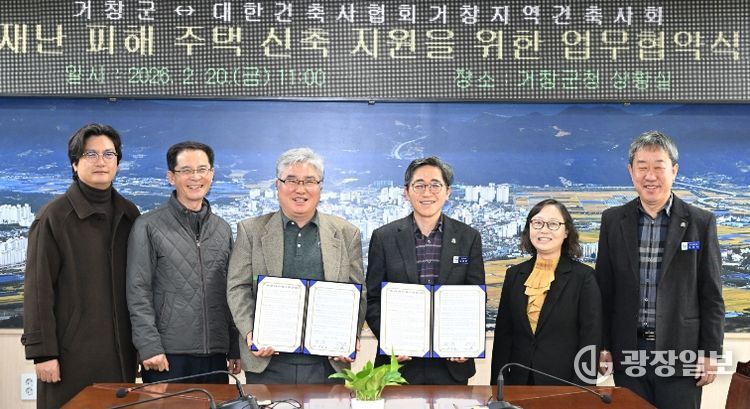 광장일보 주재영 기자 | 거창군은 20일, 군청 상황실에서 거창지역건축사회와 ‘재난피해주택 신축 지원을 위한 업무협약’을 체결했다.