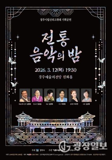 광장일보 주재영 기자 | 경주시립신라고취대가 오는 3월 12일 오후 7시 30분 경주예술의전당 원화홀에서 2026년 첫 기획공연 ‘전통음악의 밤’을 선보인다.