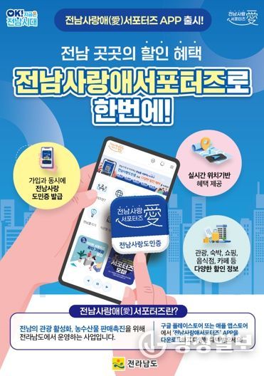 앱은 구글 플레이스토어나 애플 앱스토어에서 ‘전남 사랑애 서포터즈’를 검색해 내려받을 수 있다.