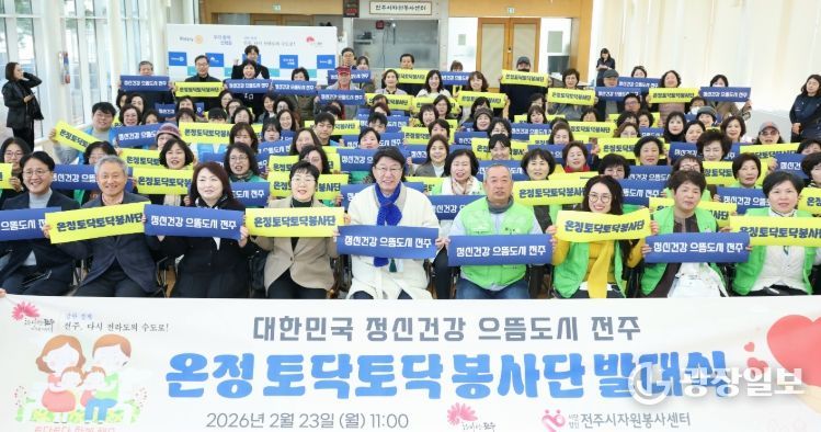 전주시는 23일 전주시자원봉사센터에서 지역사회에 희망을 전하고 나눔 문화를 확산하는 데 앞장설 ‘온정 토닥토닥 봉사단 발대식’을 가졌다.