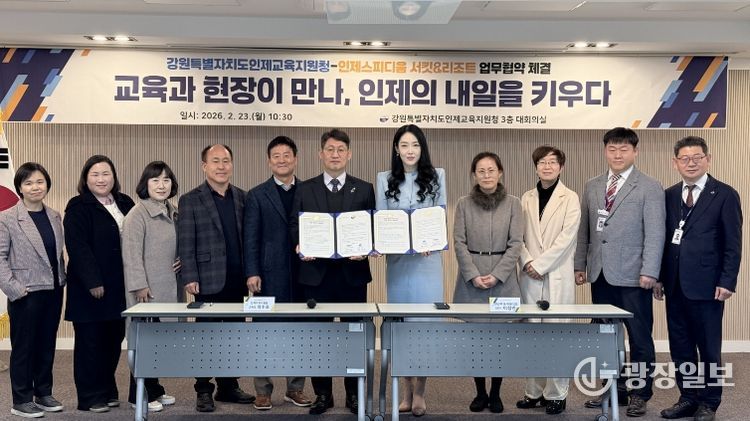 최수호 교육장은 “이번 협약은 학교와 지역사회, 산업 현장이 함께 만드는 인제형 교육 협력의 의미 있는 출발점”이라며 “앞으로도 지역과 연계한 다양한 교육 주체들과 협력하여 학생들이 미래 역량을 키울 수 있는 교육 환경을지속적으로 확장해 나가겠다”고 밝혔다.