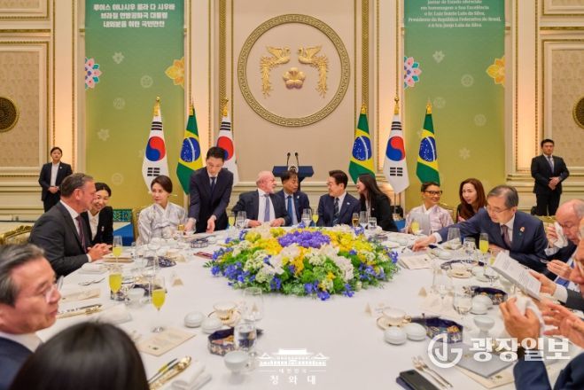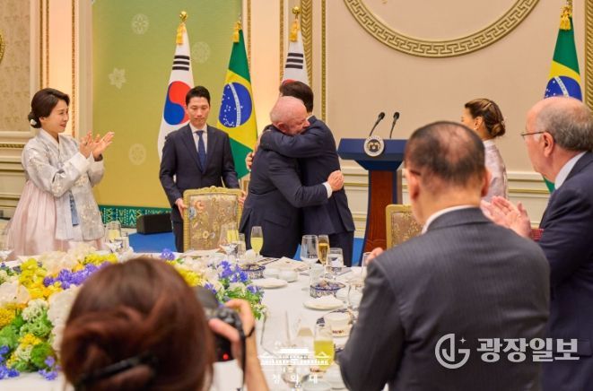 광장일보 주재영 기자 | 이재명 대통령 부부는 23일 저녁, 국빈 방한 중인 룰라 다 시우바 대통령 부부와 브라질 대표단을 청와대 영빈관으로 초청해 만찬을 함께 했다.