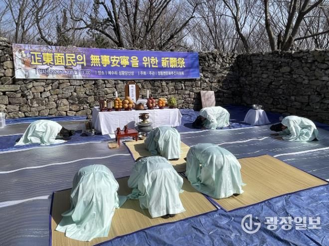 광장일보 주재영 기자 | 사천시 정동면문화추진위원회가 병오년 새해를 맞이해 23일 오전 11시 정동면 예수리 성황당산성에서 ‘제17회 정동면민무사안녕기원제’를 봉행했다.